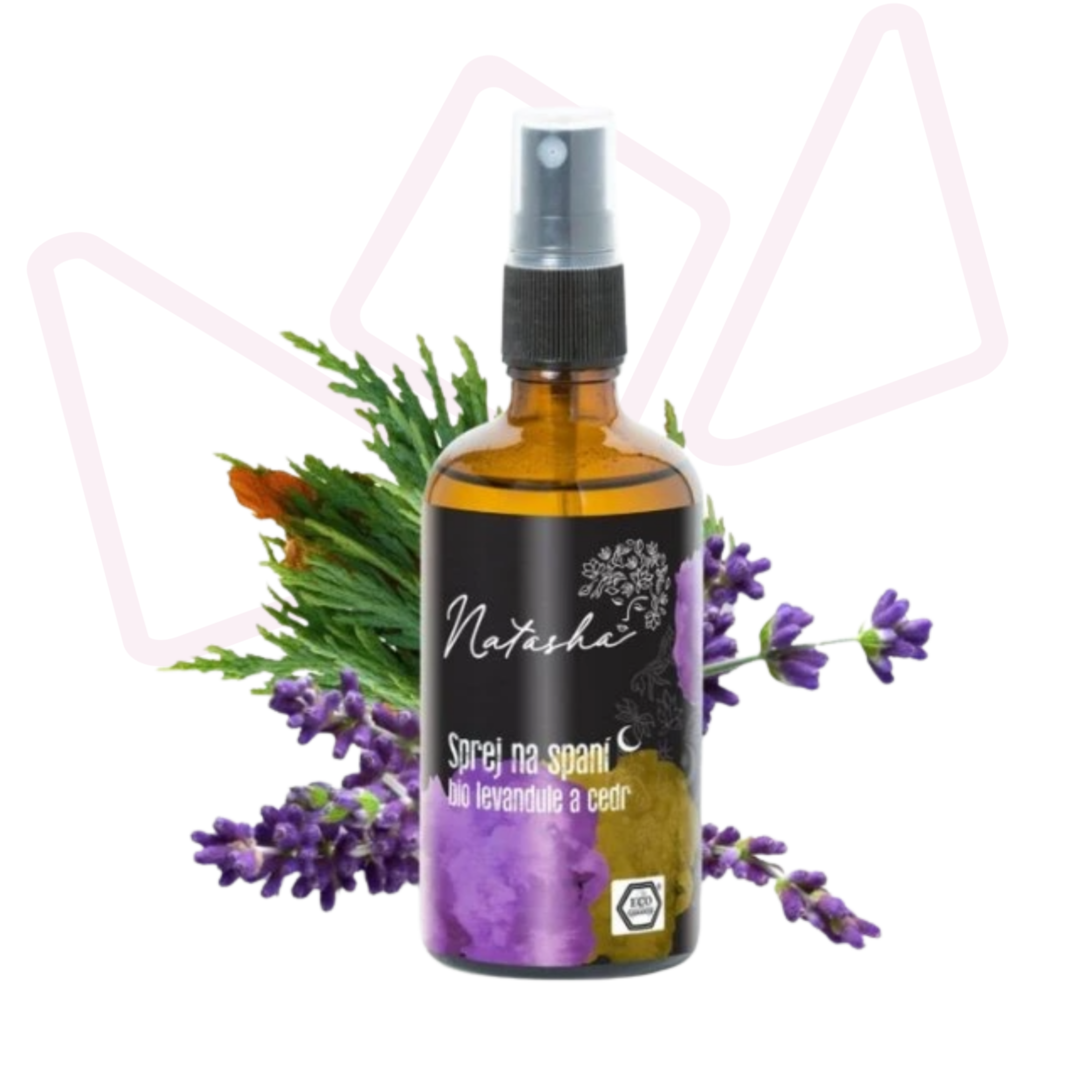 Natasha BIO sprej na spanie – Levanduľa & Céder 100 ml. Jemný pillow mist pre pokojný večer a harmonickú atmosféru spálne.